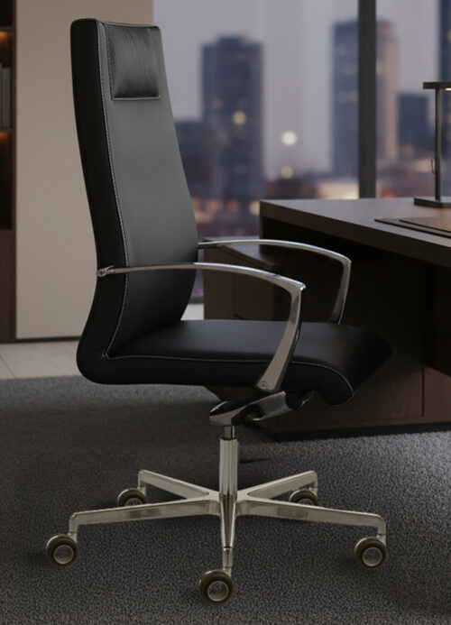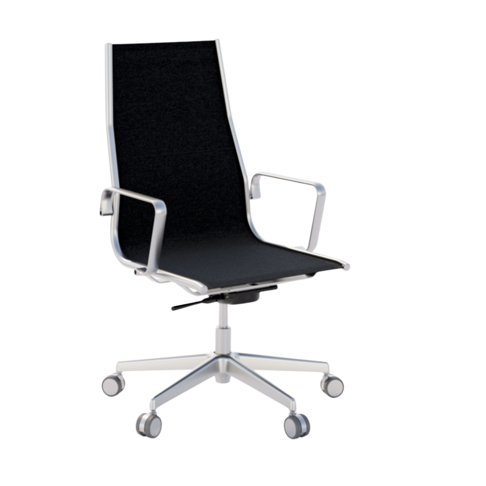 HIGH BECKREST, THIN-PADMODEL, ALUMINIUM 5 STAR BASE, WITH ARMREST