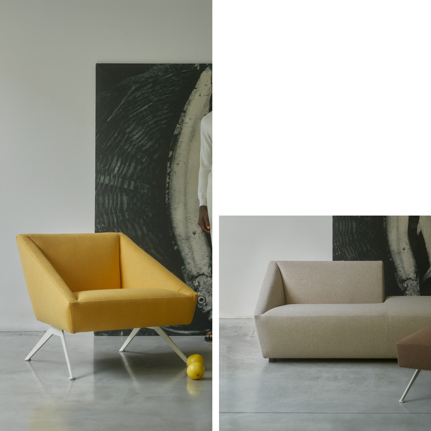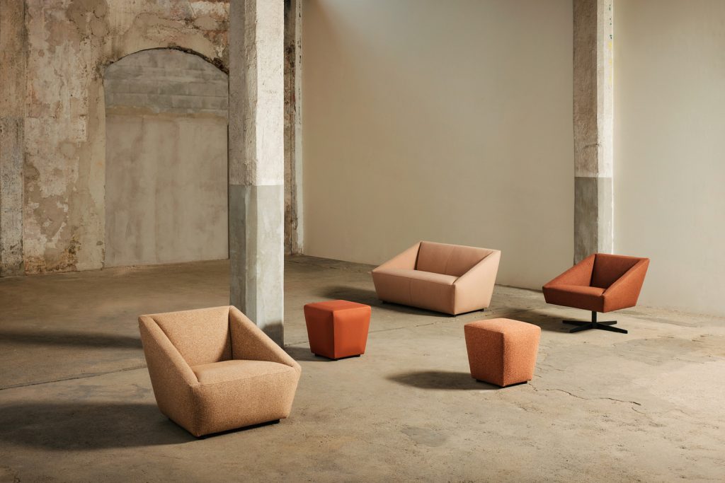 Famiglia di sedute dalle forme squadrate avvolgenti, adatta a contesti ricercati ed innovativi.